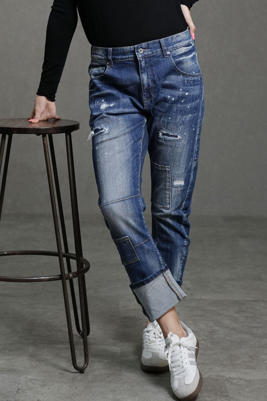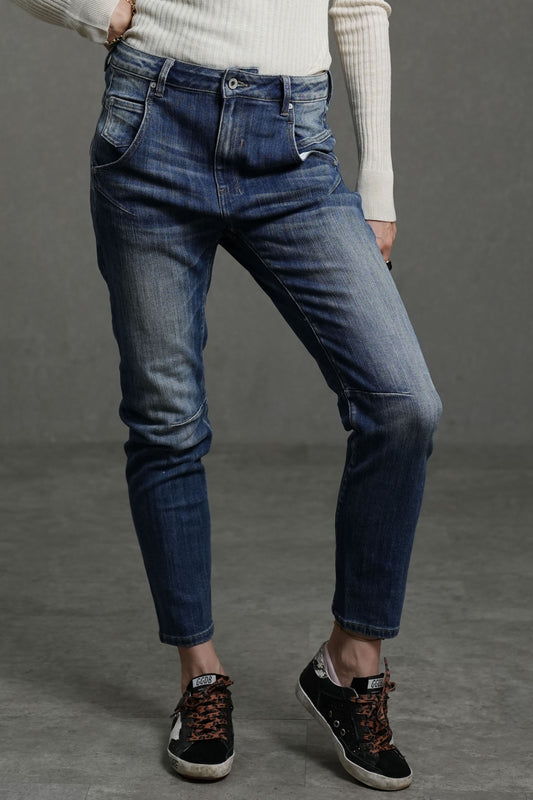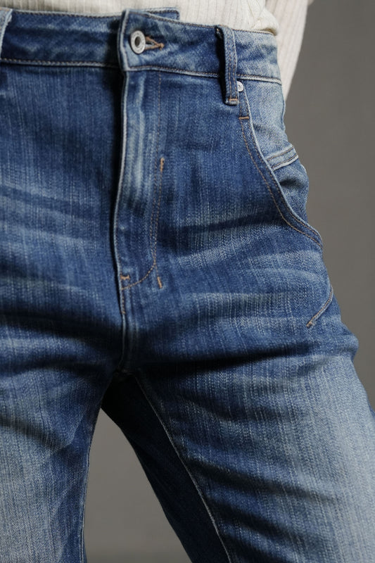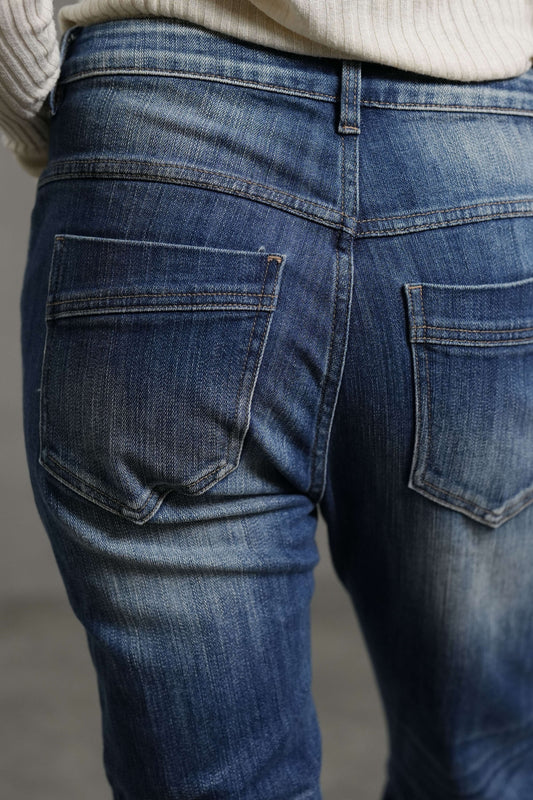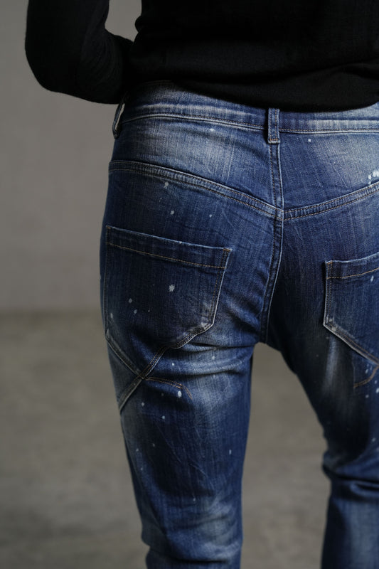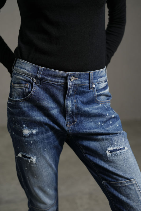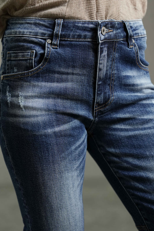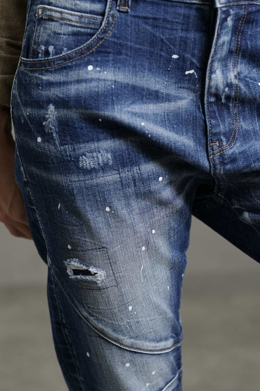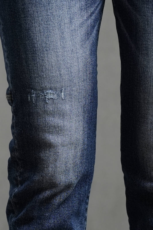 Blue Distressed High-Stretch Slim Tapered Fit Jeans