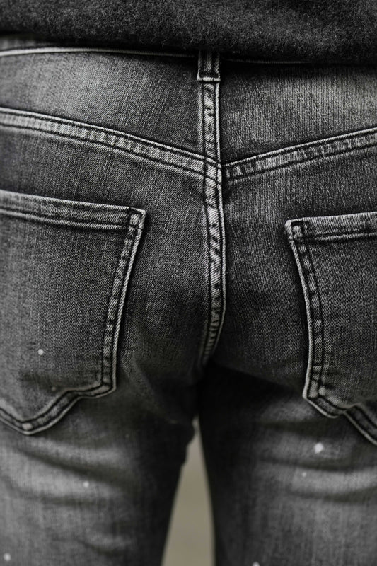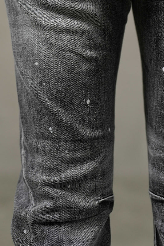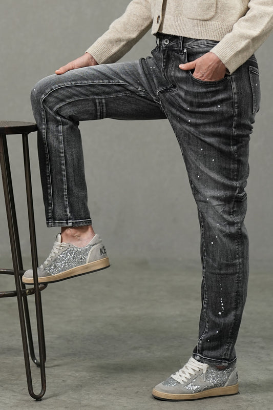Black Mid-Stretch Slim Fit Jeans with White Lacquer Print