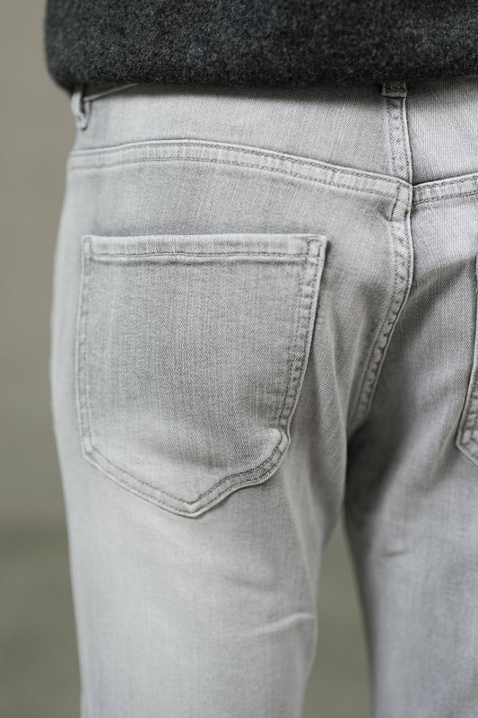 Ivory Faux-Fur Coat with Grey Gradient and Denim Trim