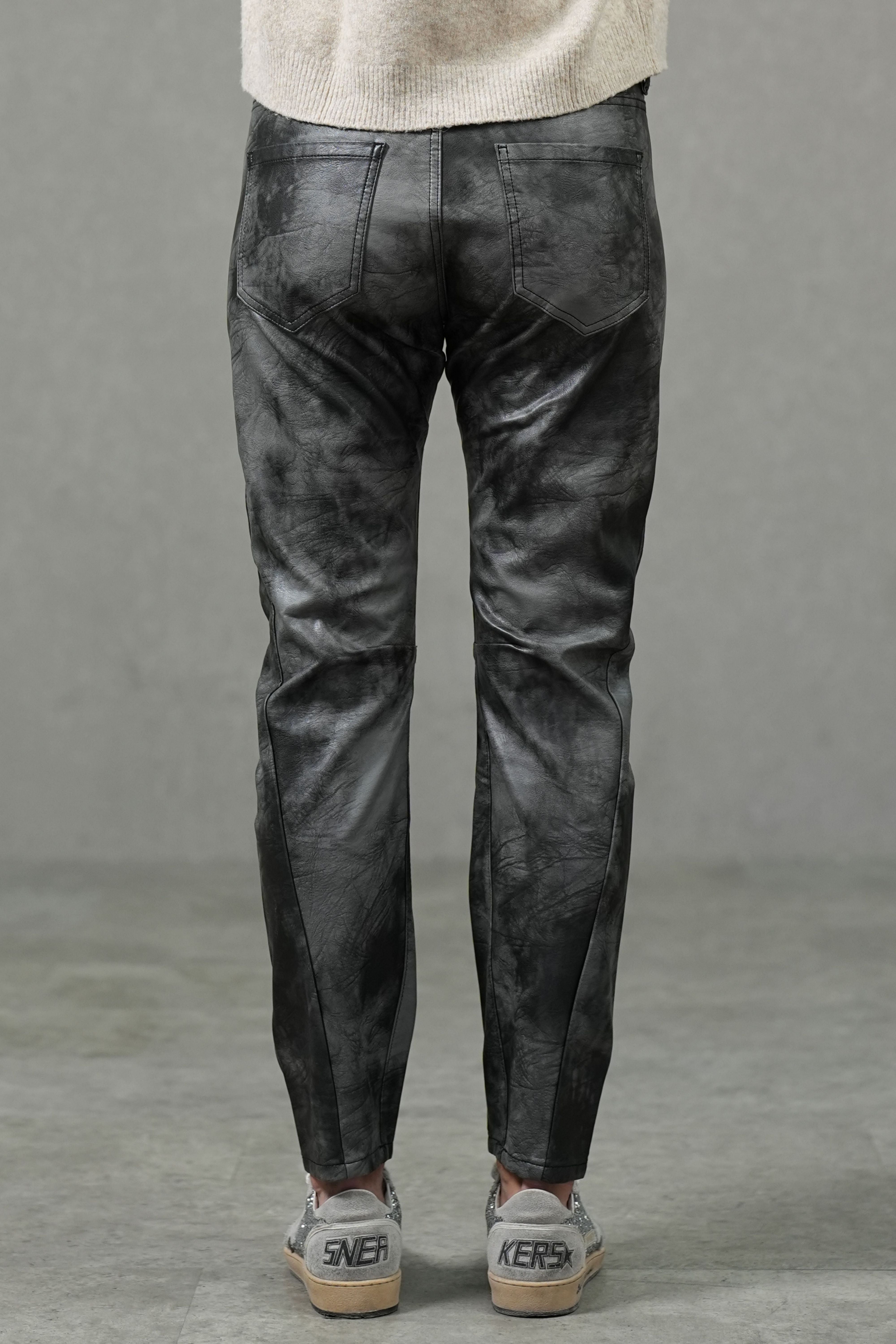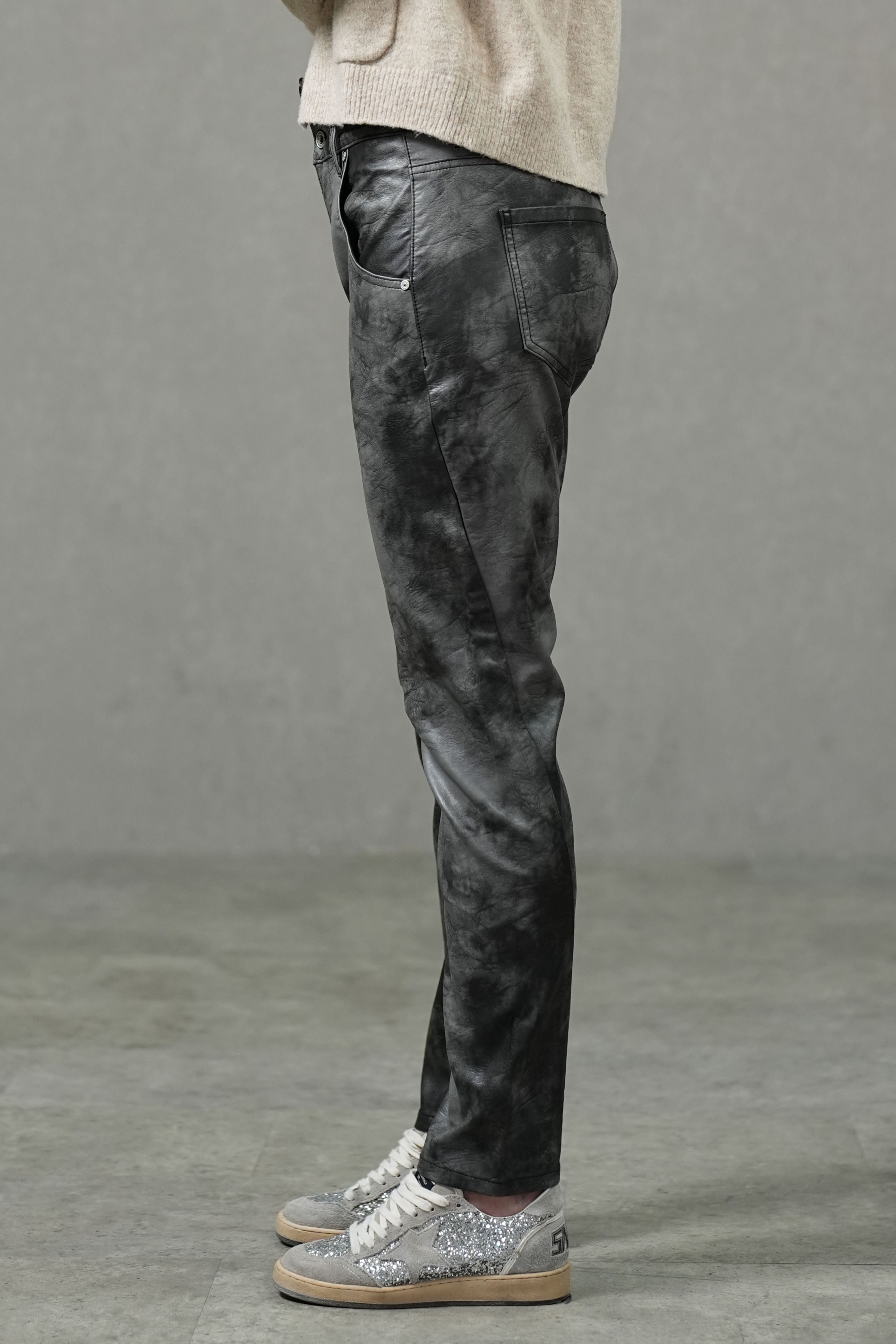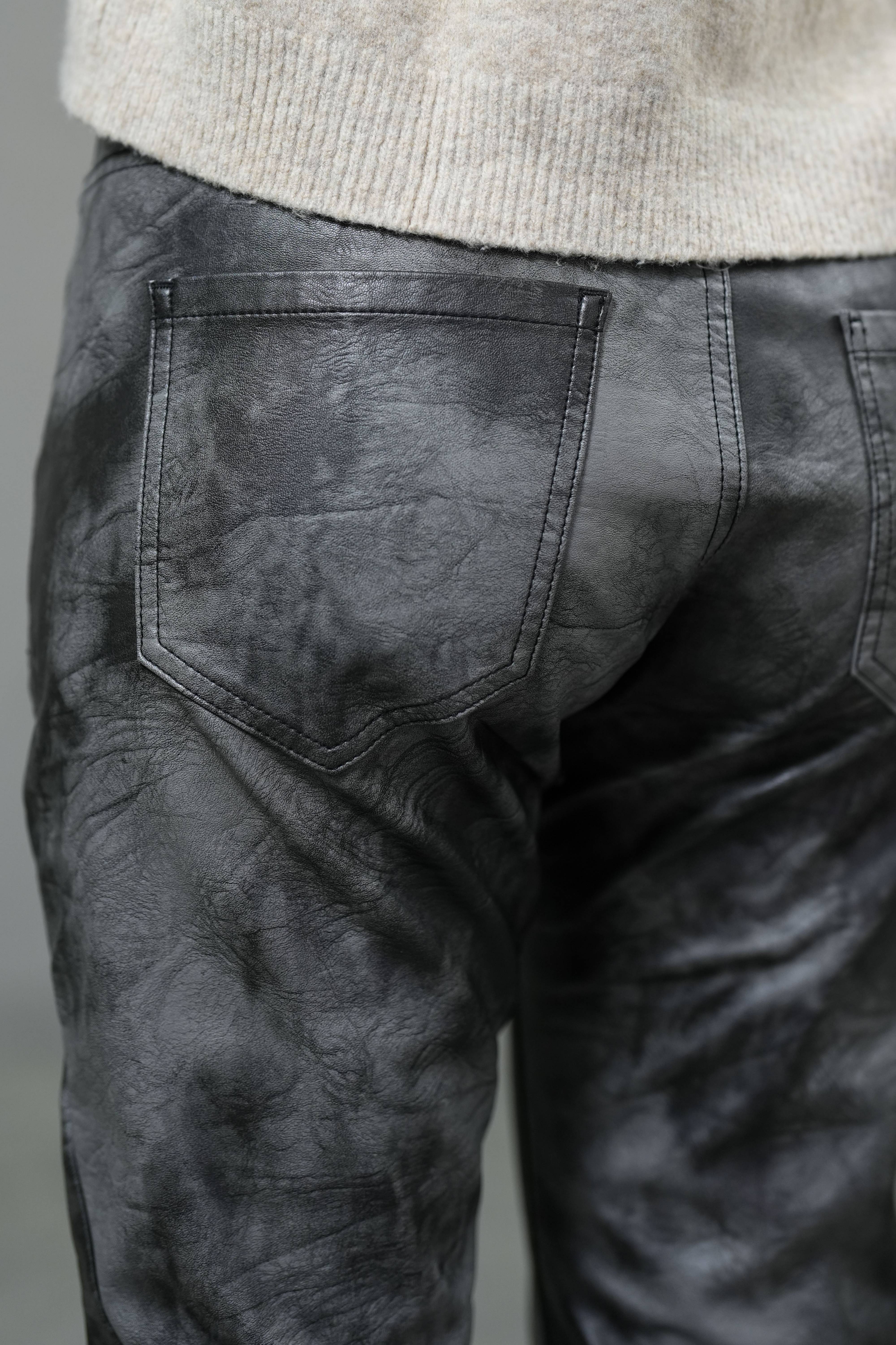 Crafted from a coated fabric blend with a sleek leather-like finish, these jeans combine high stretch with a close, body-contouring fit. Designed with a mid-rise waist and slim fit cut, they move with ease while delivering a bold, polished look that transitions effortlessly from daywear to night-out style.