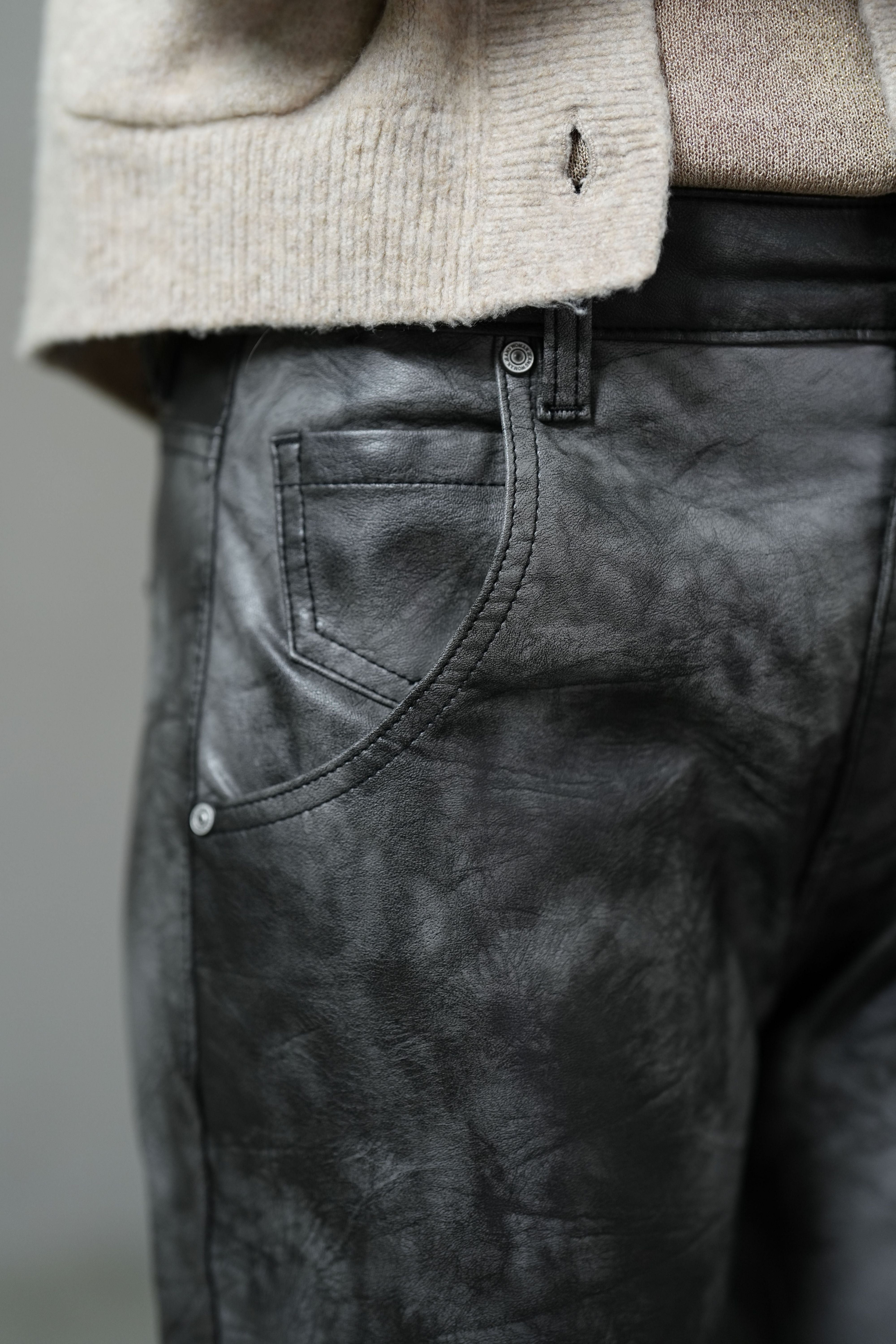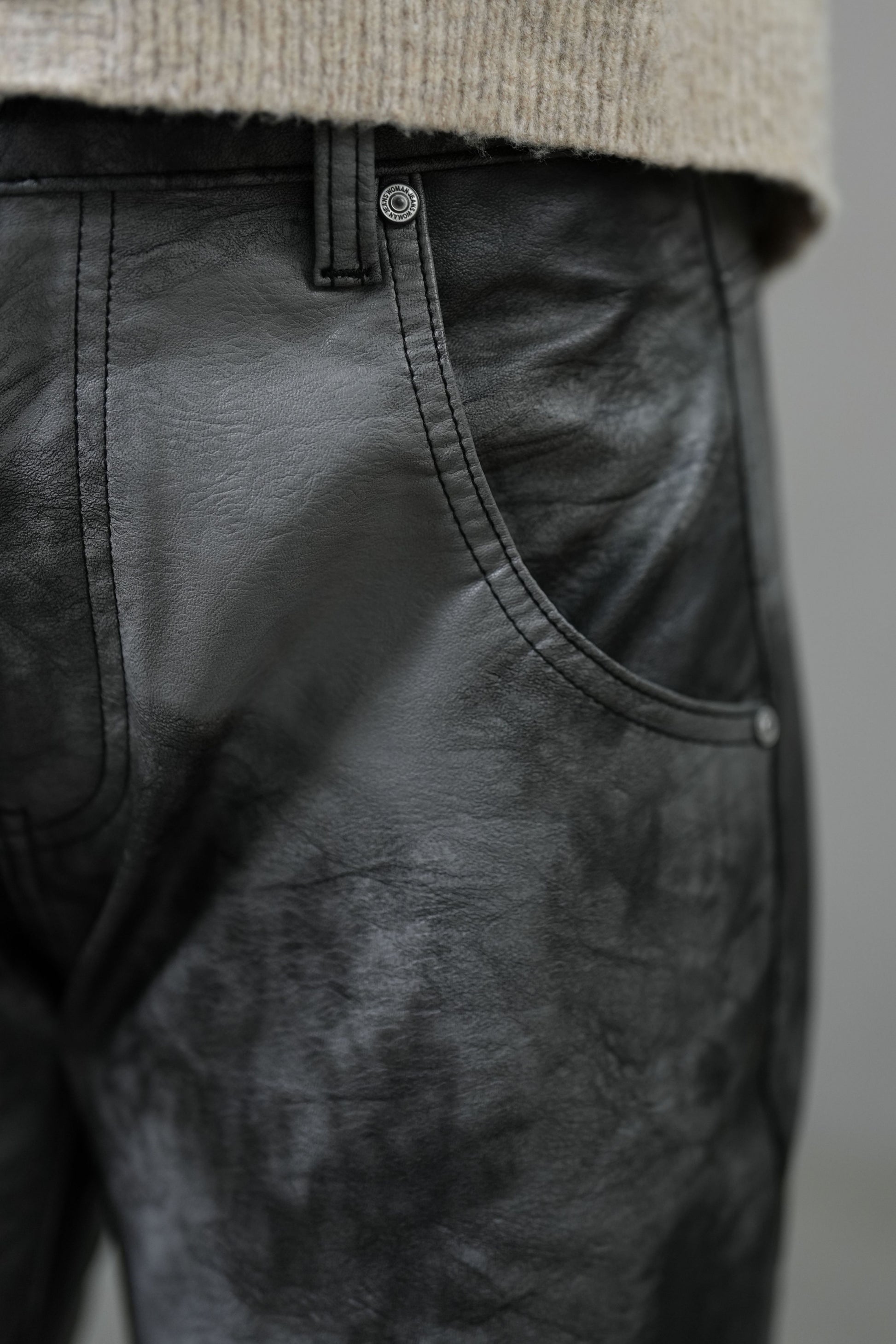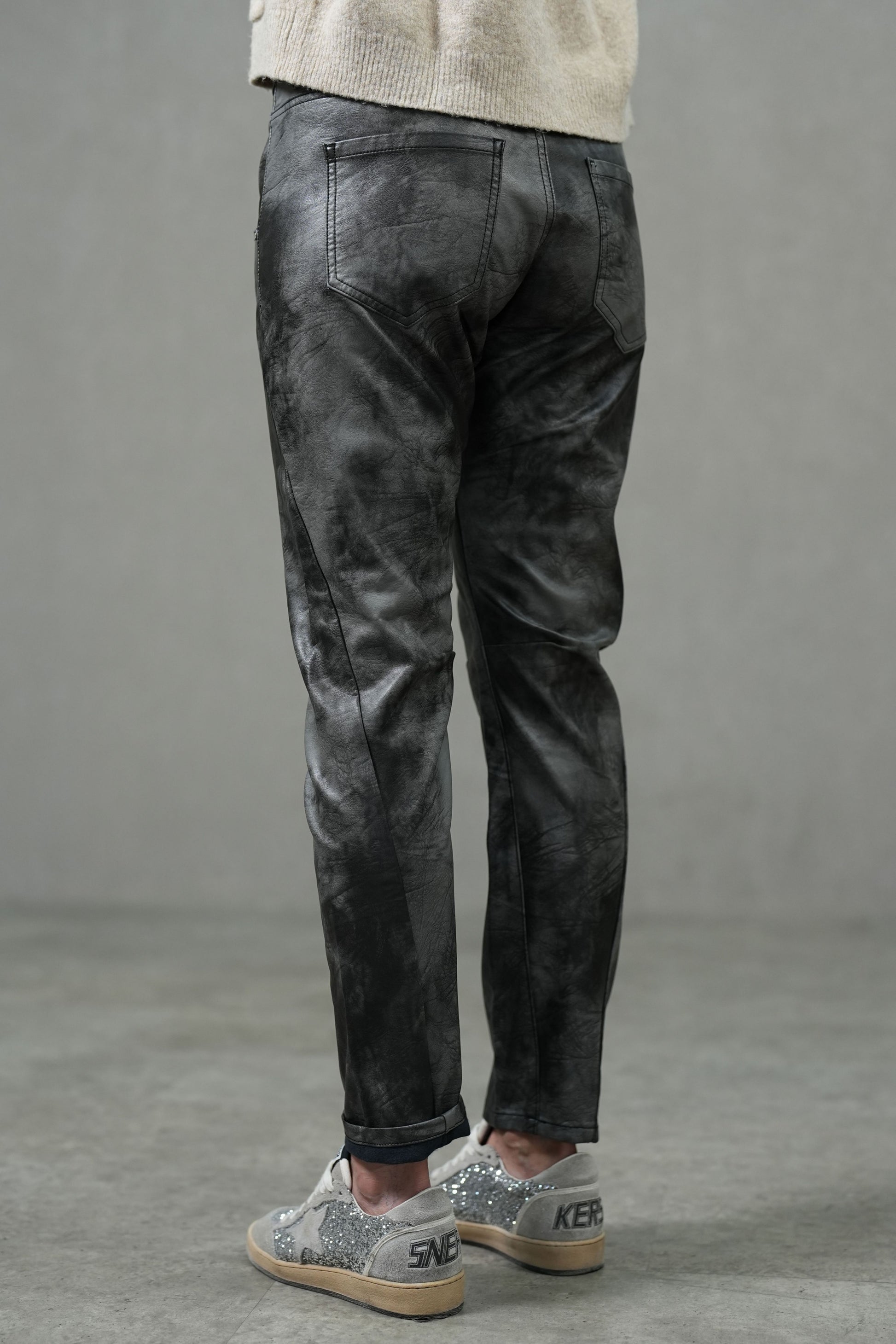 Crafted from a coated fabric blend with a sleek leather-like finish, these jeans combine high stretch with a close, body-contouring fit. Designed with a mid-rise waist and slim fit cut, they move with ease while delivering a bold, polished look that transitions effortlessly from daywear to night-out style.