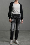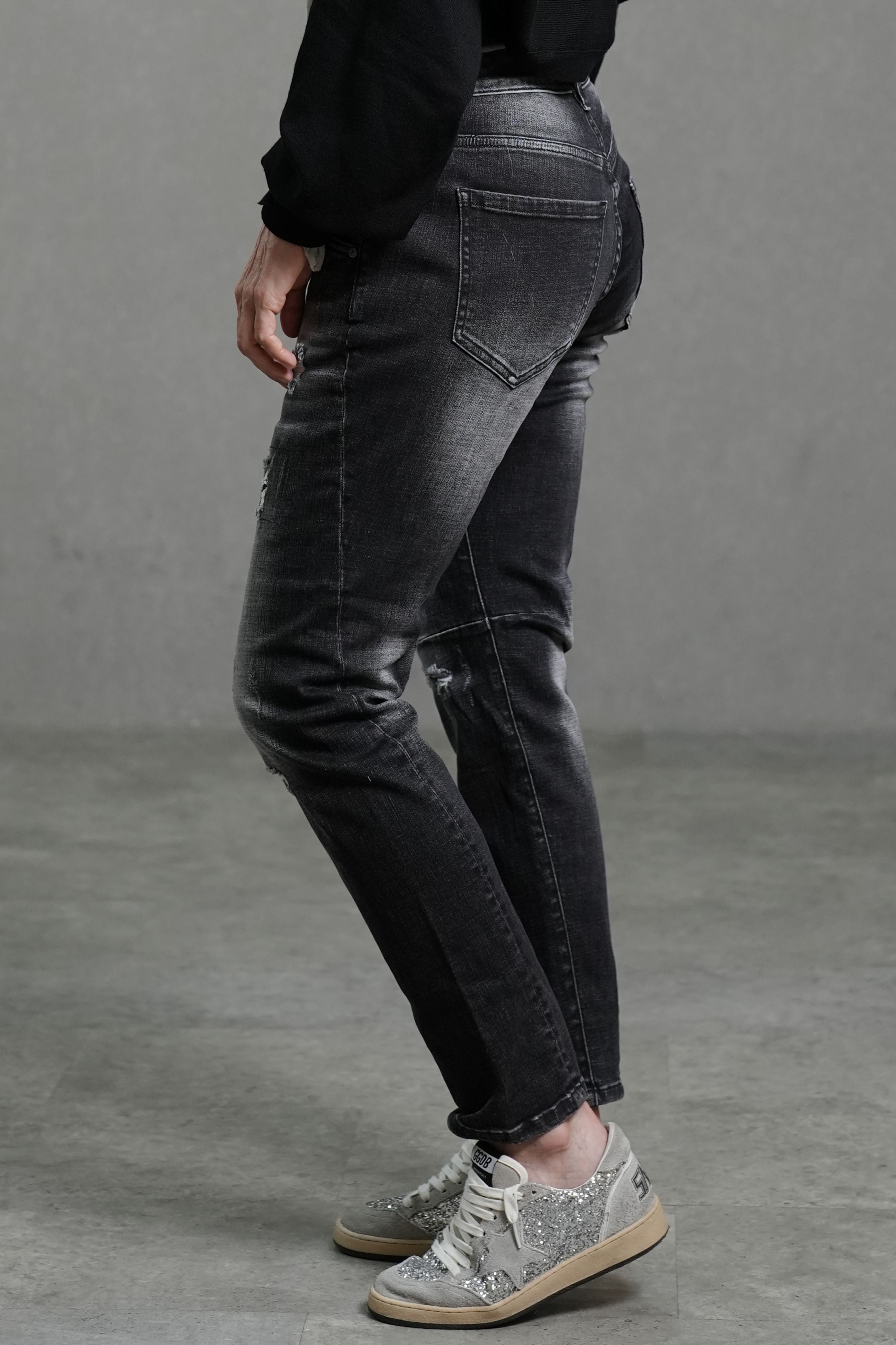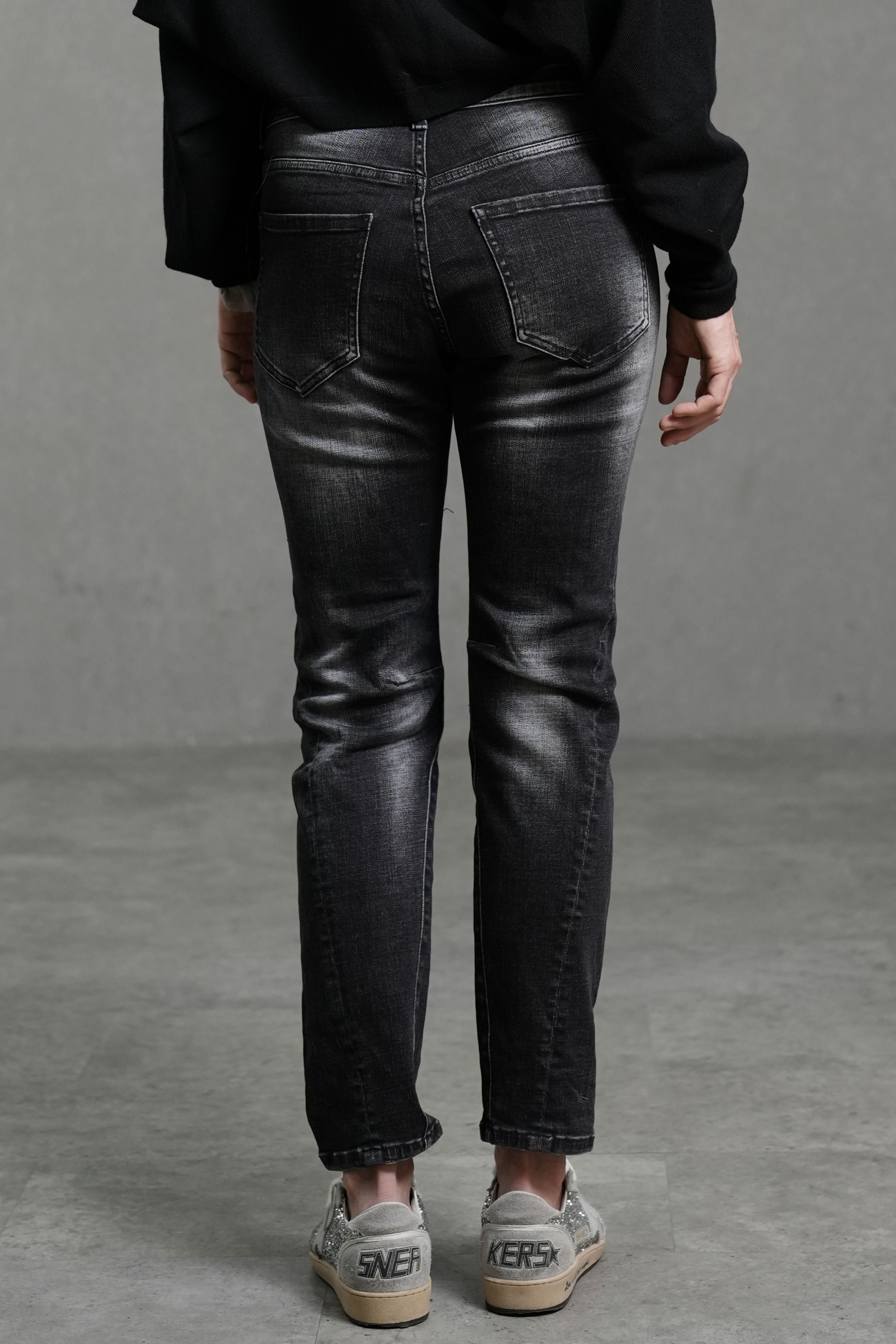 Crafted from smooth, medium-stretch denim that offers gentle flexibility, these jeans flatter the silhouette while ensuring everyday comfort. Designed with a mid-rise waist and slim fit cut, they follow the natural line of the leg for a confident, streamlined look. Subtle distressing and fading add a modern, lived-in character.