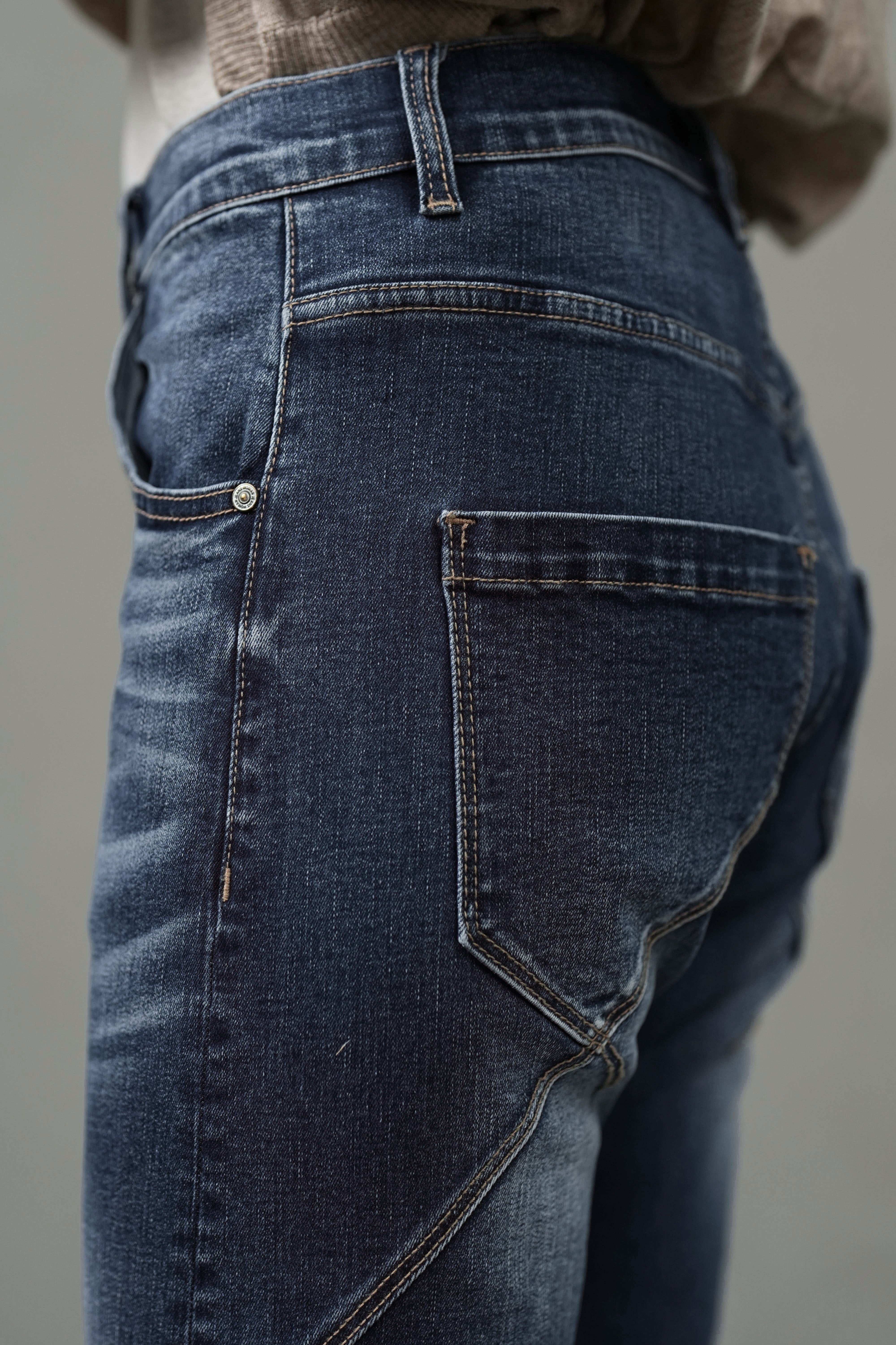 Crafted from durable, low-stretch denim that keeps a clean shape while offering everyday comfort. The slim tapered leg defines the silhouette, and the cuffed hem can be styled up or worn long for a full-length look.