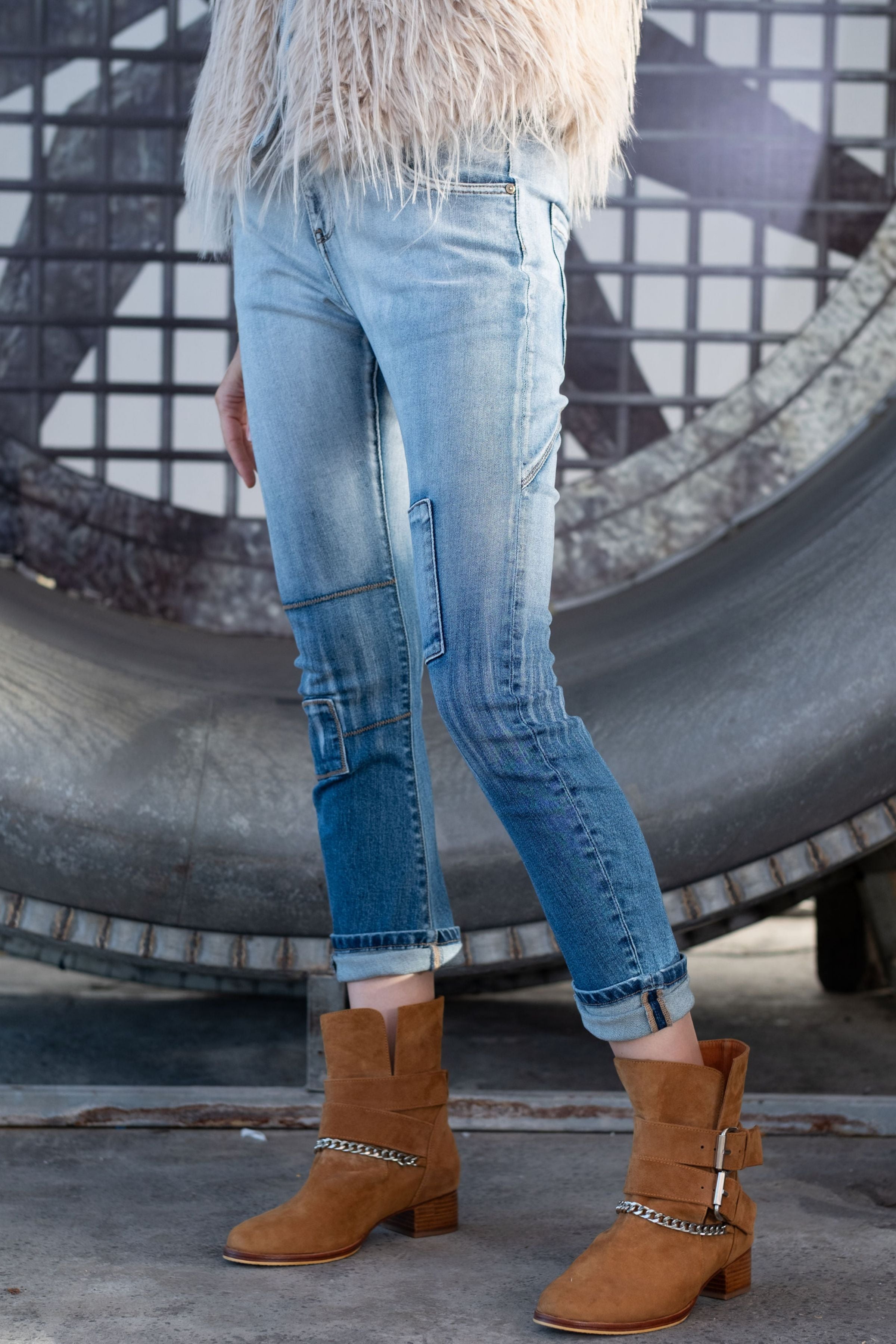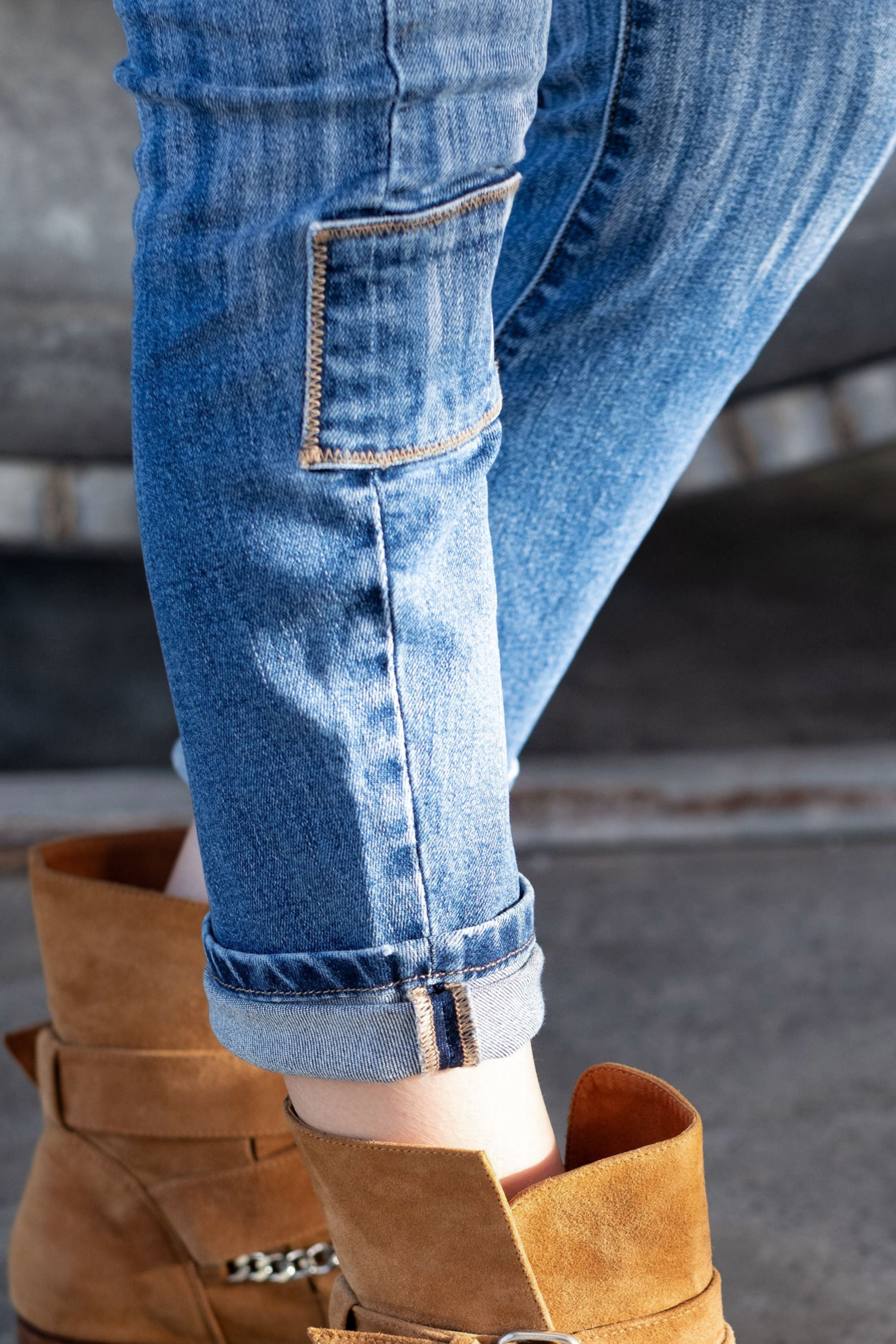 Crafted from smooth, medium-stretch denim that balances gentle flexibility with everyday durability. Designed with a mid-rise waist and slim ankle cut, these jeans flatter the silhouette, sculpt the legs, and subtly elongate the figure—offering both comfort and a sleek, versatile look.