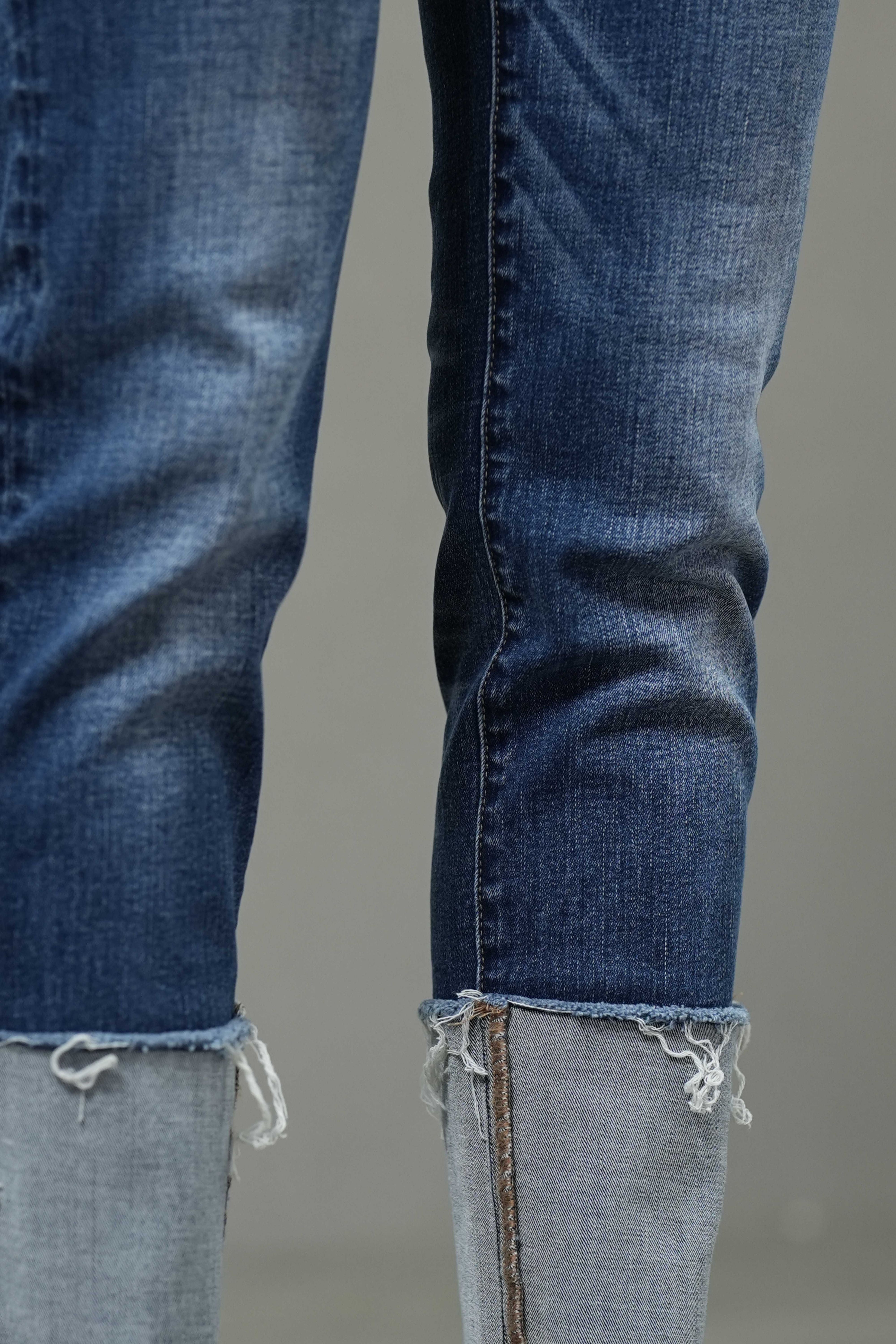 Blue Mid-Stretch Slim Cigarette Jeans with Fixed Cuffed Hem