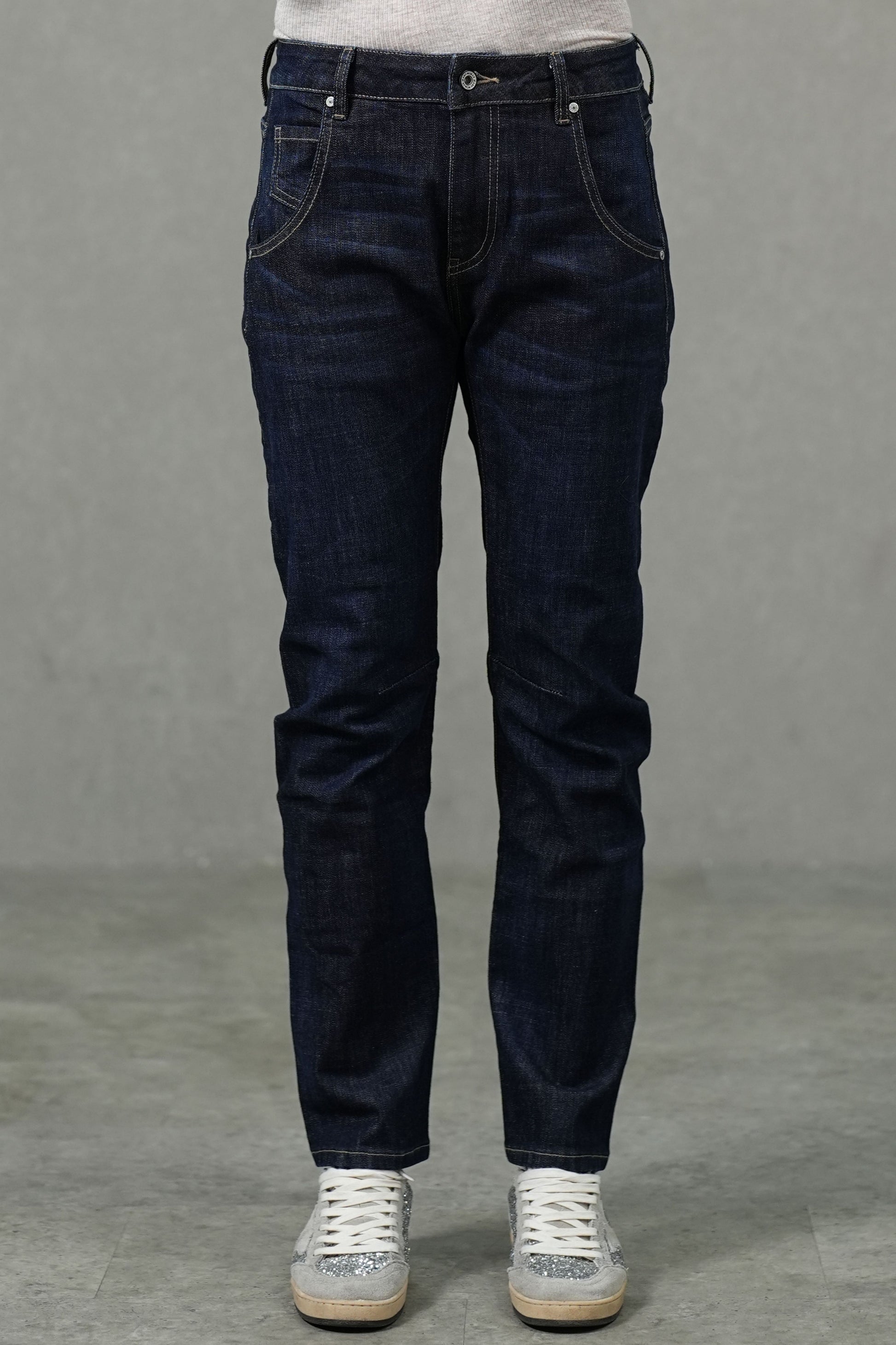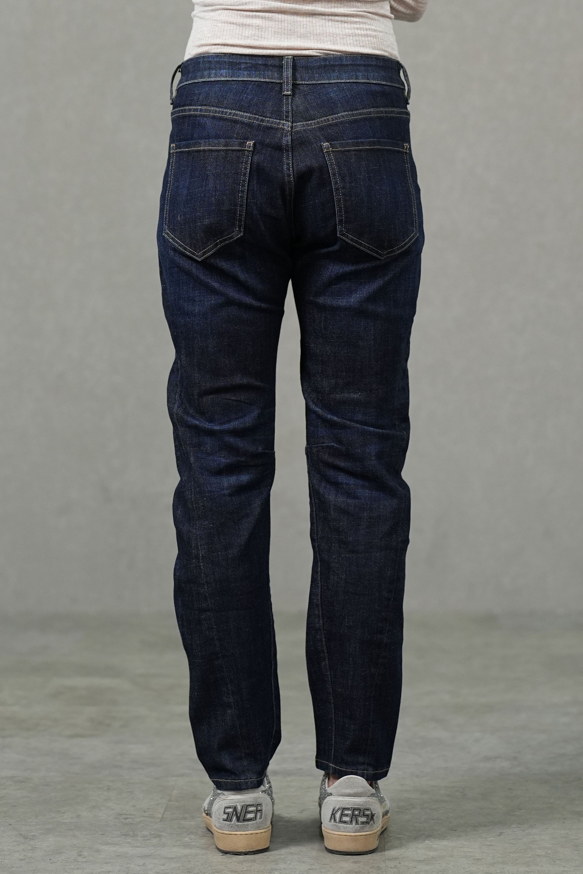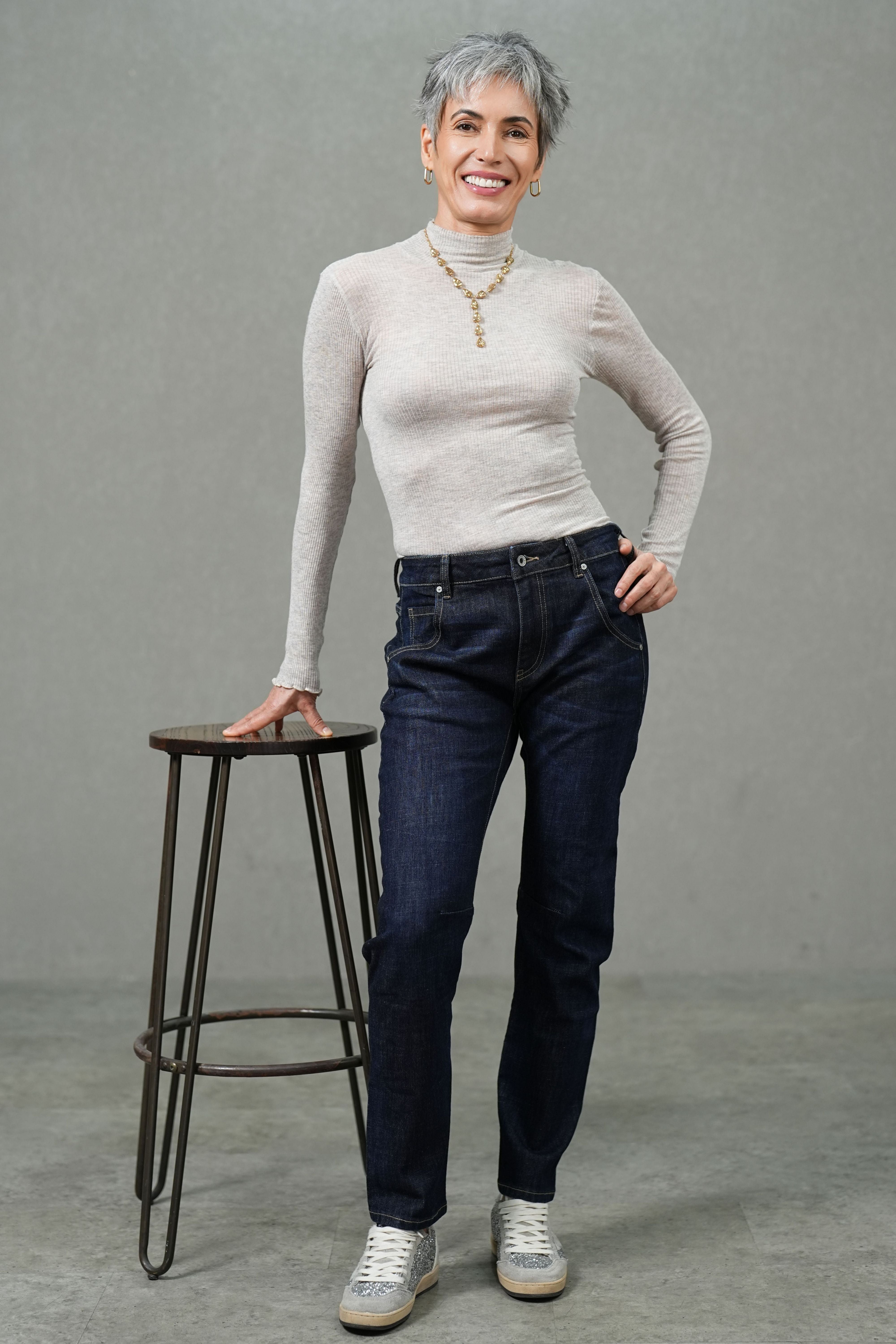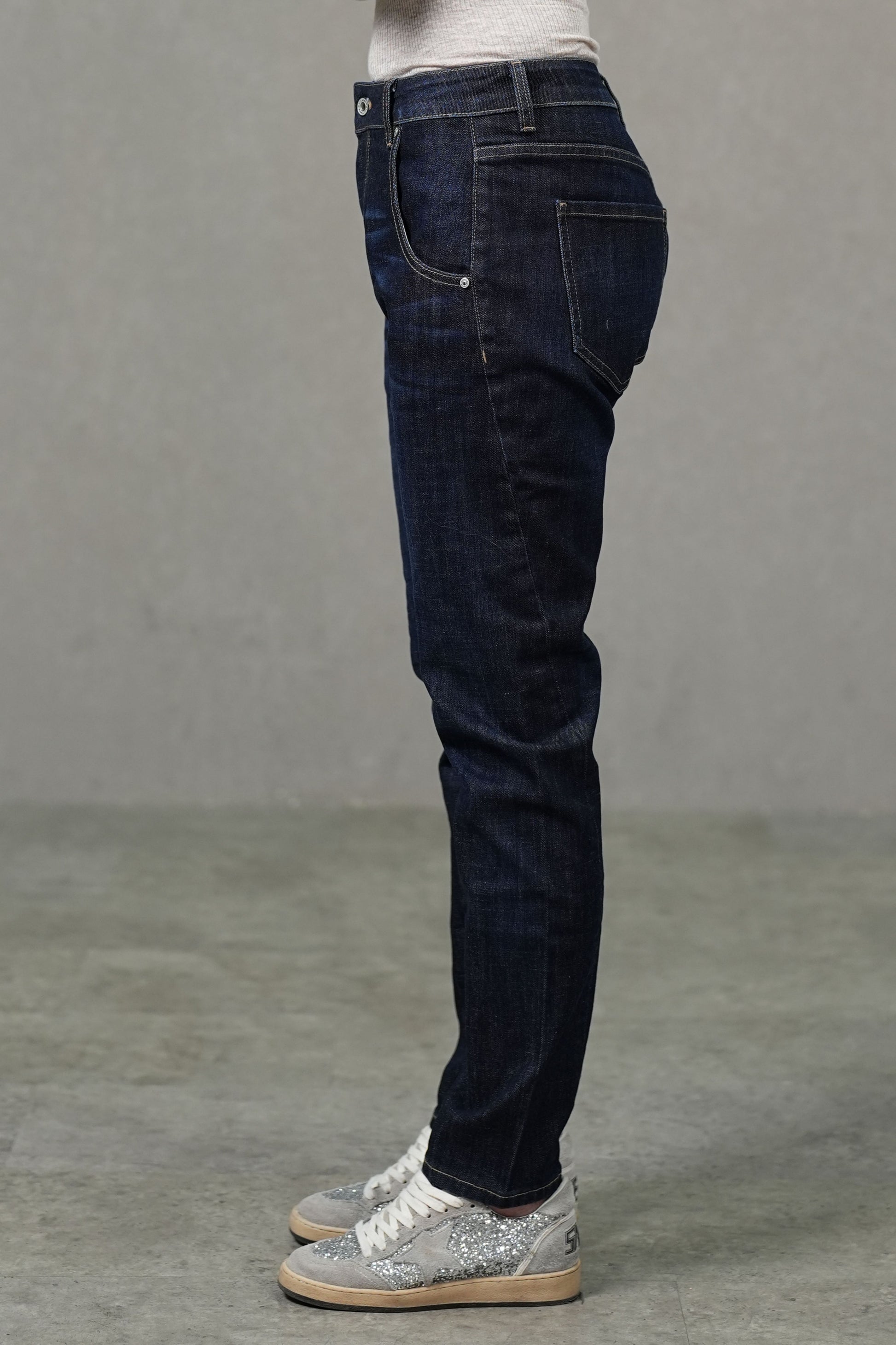 Crafted from structured, low-stretch denim that holds its shape, these jeans deliver a confident, sculpted silhouette. Designed with a mid-rise waist and slim fit cut, they follow the natural line of the leg to create a clean, streamlined look from hip to ankle.